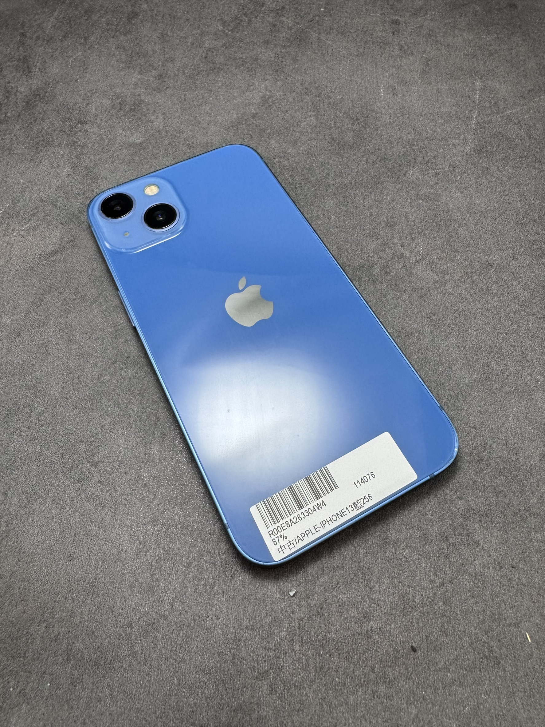 (4076) 型號:二手 IPHONE 13 規格:256G 版本:26.1 顏色:藍 電池健康度:87% 外觀:有傷 功能:正常 保固:店保一個月(不含相機電池)
