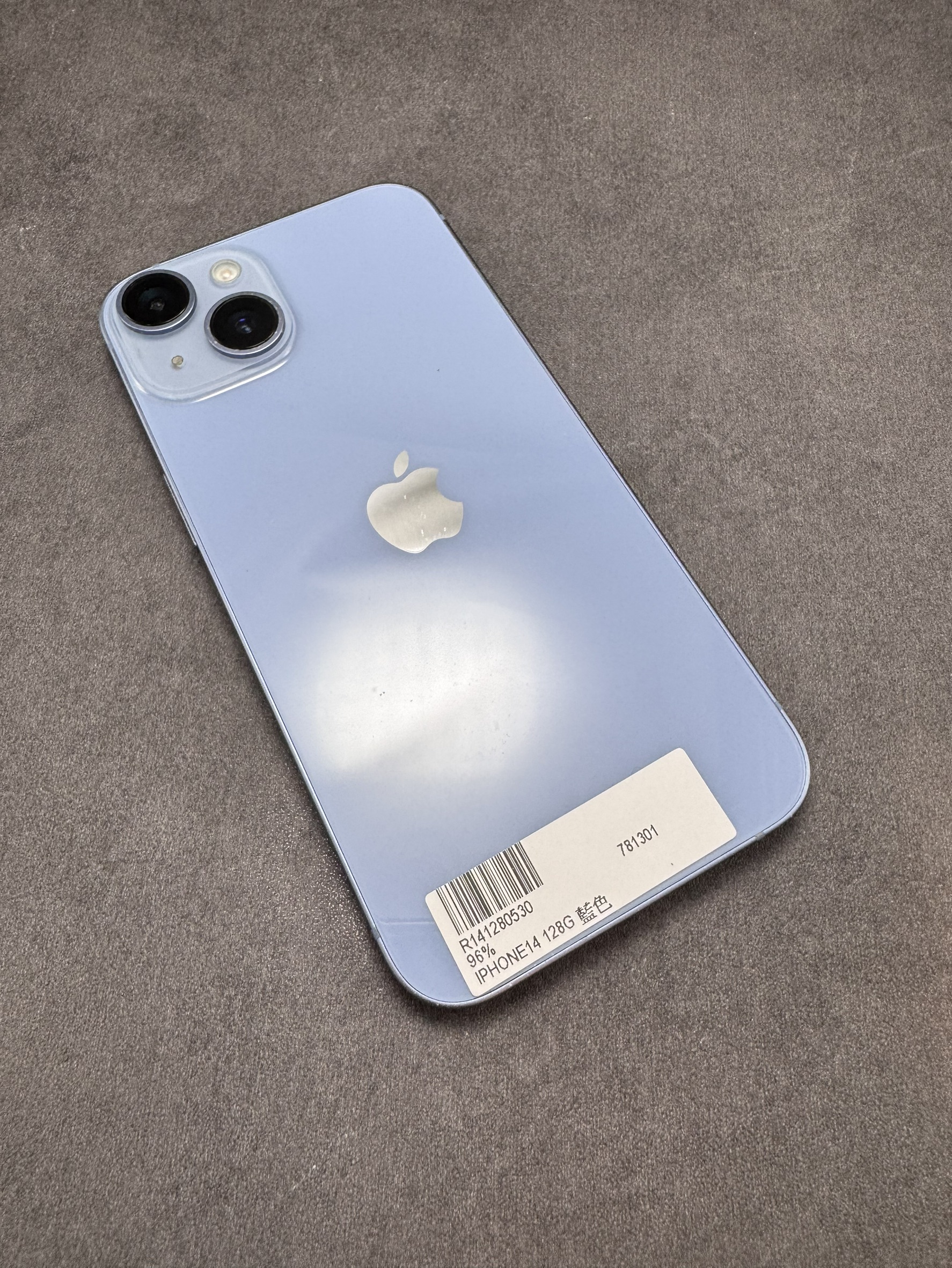 (1301) 型號:二手 IPHONE 14 規格:128G 版本:26.4.1 顏色:藍 電池健康度:96% 外觀:有傷 功能:正常 保固:店保一個月(不含相機電池)
